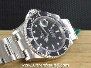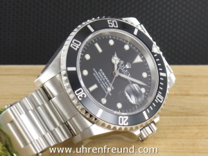 Rolex Submariner Date Ref. 16610 aus 2001 mit Verkaufsdatum 08.08.2001. Das Gehäuse und Band befinden sich in unpoliertem und ungetragenen Zustand und weisen keine Gebrauchsspuren auf. Die polierten Gehäuseflanken sind noch original verklebt. Das Uhrwerk ist überholt, kontrolliert und läuft einwandfrei. Die Lieferung erfolgt incl. Box mit Umkarton, Originalzertifikat, Anleitungen, Rechnung von Classic Watches sowie CW - Garantiezertifikat.