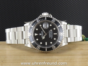 Rolex Submariner Date Ref. 16610 aus 2001 mit Verkaufsdatum 08.08.2001. Das Gehäuse und Band befinden sich in unpoliertem und ungetragenen Zustand und weisen keine Gebrauchsspuren auf. Die polierten Gehäuseflanken sind noch original verklebt. Das Uhrwerk ist überholt, kontrolliert und läuft einwandfrei. Die Lieferung erfolgt incl. Box mit Umkarton, Originalzertifikat, Anleitungen, Rechnung von Classic Watches sowie CW - Garantiezertifikat.