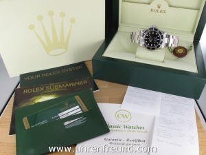 Rolex Submariner Ref. 14060M aus 2007 mit Verkaufsdatum 01.07.2008. Das Gehäuse und Band befinden sich in sehr gutem Zustand und weisen keine Gebrauchsspuren auf. Die Uhr kann als neuwertig bezeichnet werden. Das Uhrwerk ist überholt, kontrolliert und läuft einwandfrei. Die Lieferung erfolgt mit Box Umkarton Originalzertifikat Anleitungen und Rechnung von Classic Watches sowie CW Garantie Zertifikat.