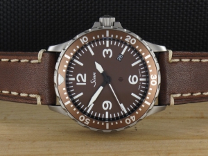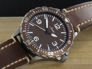 Die Auflage ist auf 50 Stück limitiert und unterscheidet sich durch ein dunkelbraunes Zifferblatt und eine gleichfarbige Lünette vom Original mit schwarzem Zifferblatt und schwarzer Lünette. Durch die Ausführung in Braun in Kombination mit dem hochwertigen Lederband von Hirsch im Panerai Look hat diese Uhr eine sehr warme und hochwertige Ausstrahlung und macht sie zum echten "Eycatcher". Die Lieferung erfolgt mit Box, Anleitung und 3 jähriger Garantie von Sinn. Durchmesser ist 43mm